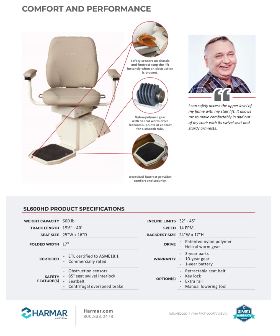 600lb weight capacity straight stairlift